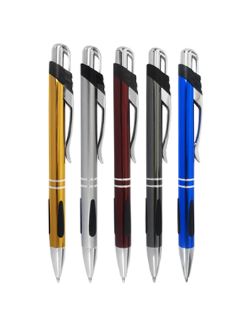 Caneta de metal, com detalhe emborrachado.
