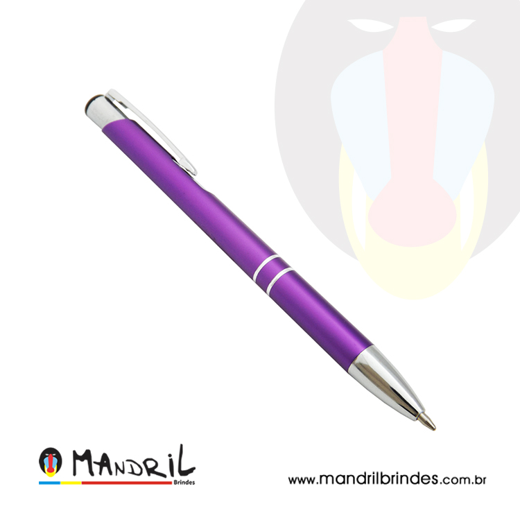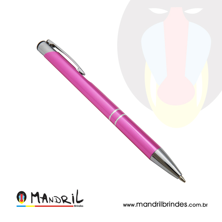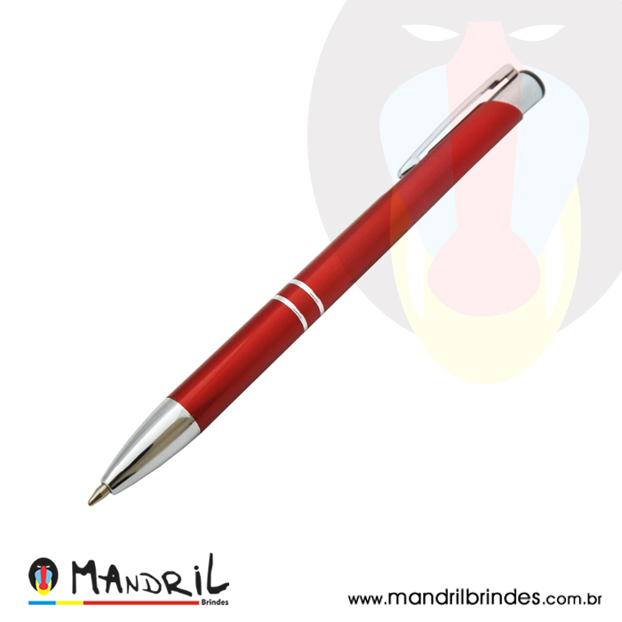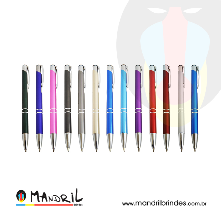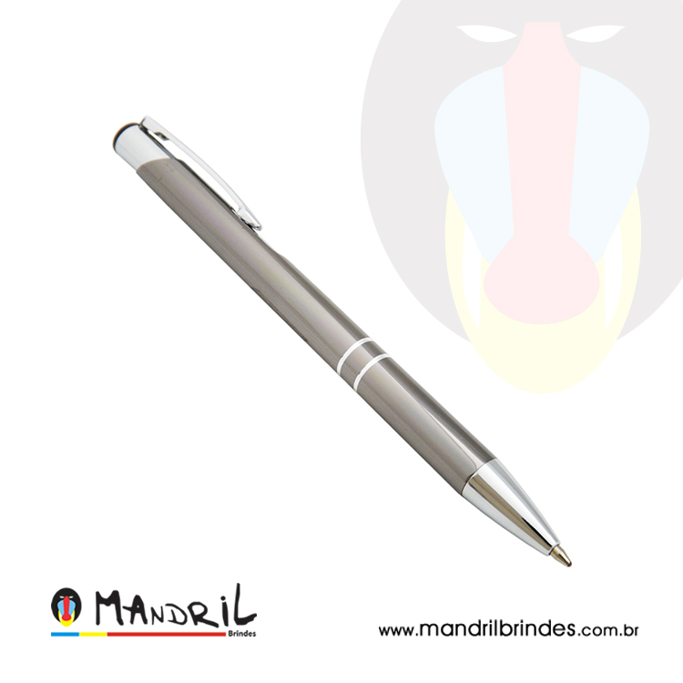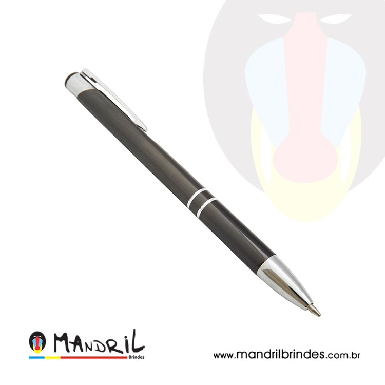 Caneta metal com detalhe prata.