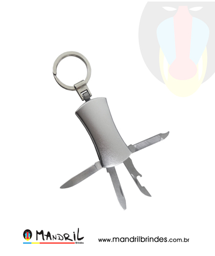 Chaveiro canivete 4 funções, material de metal.