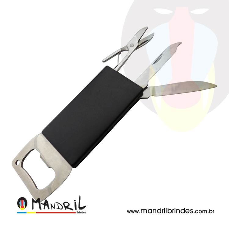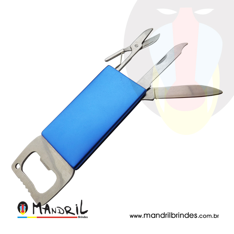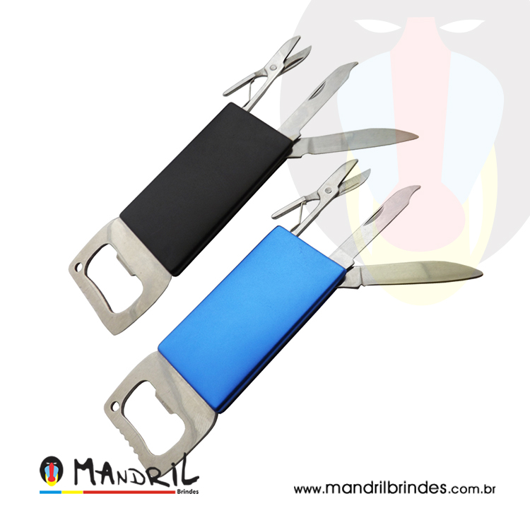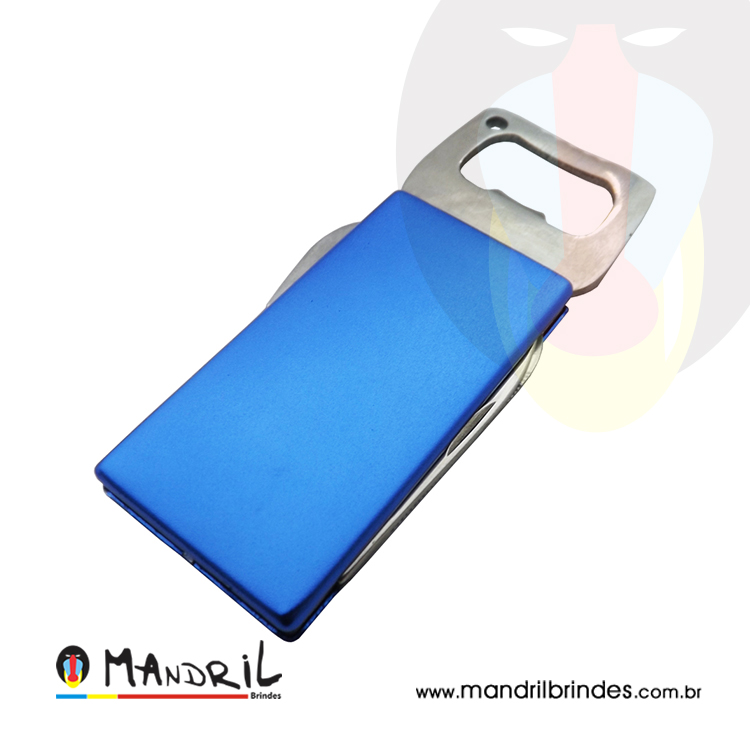 Chaveiro de metal, com 5 funções: