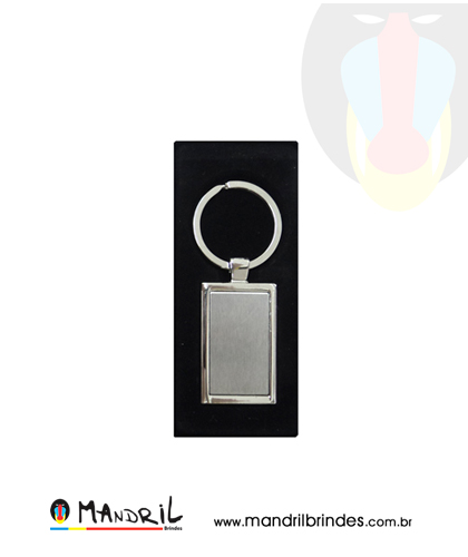 Chaveiro retangular de metal.