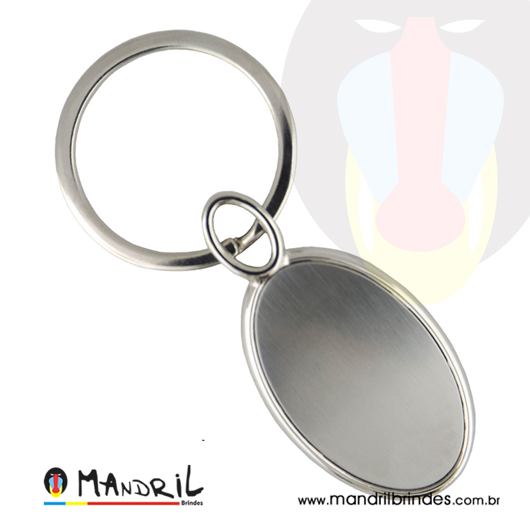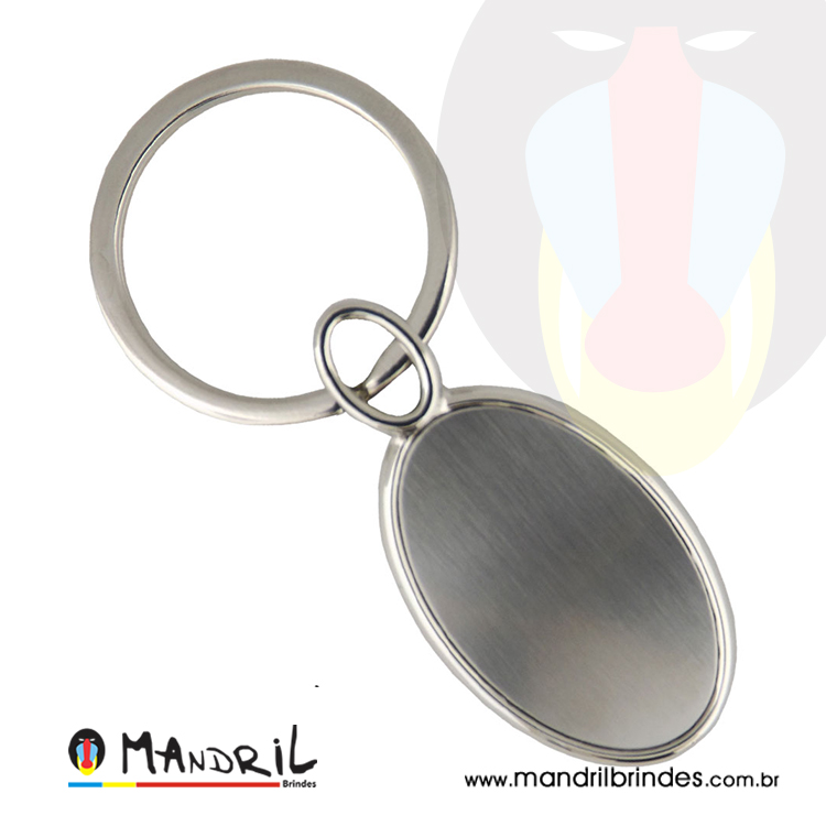 Chaveiro de metal, com detalhe na cor prata escovado nas duas faces.