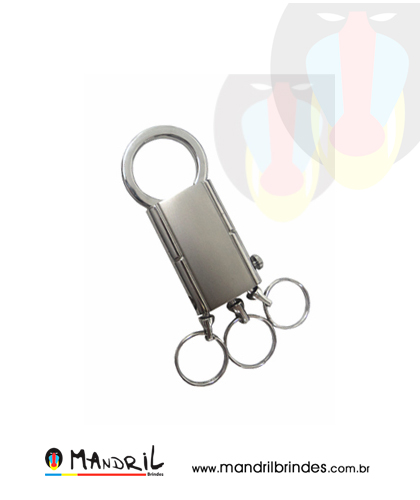 Chaveiro de metal com detalhe de 3 argolas.