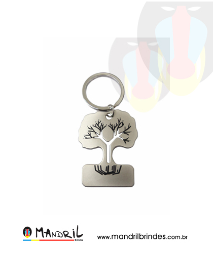 Chaveiro de metal fosco no formato de árvore.