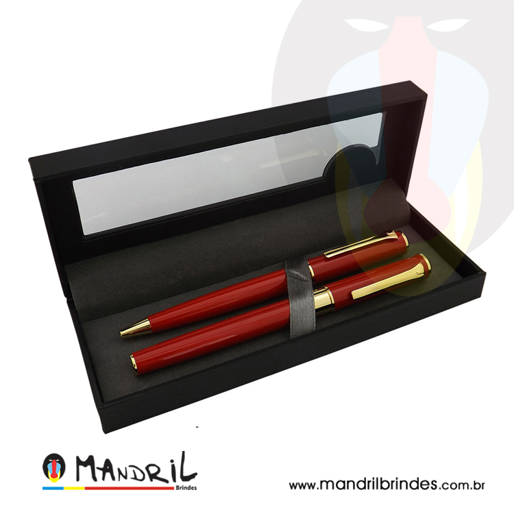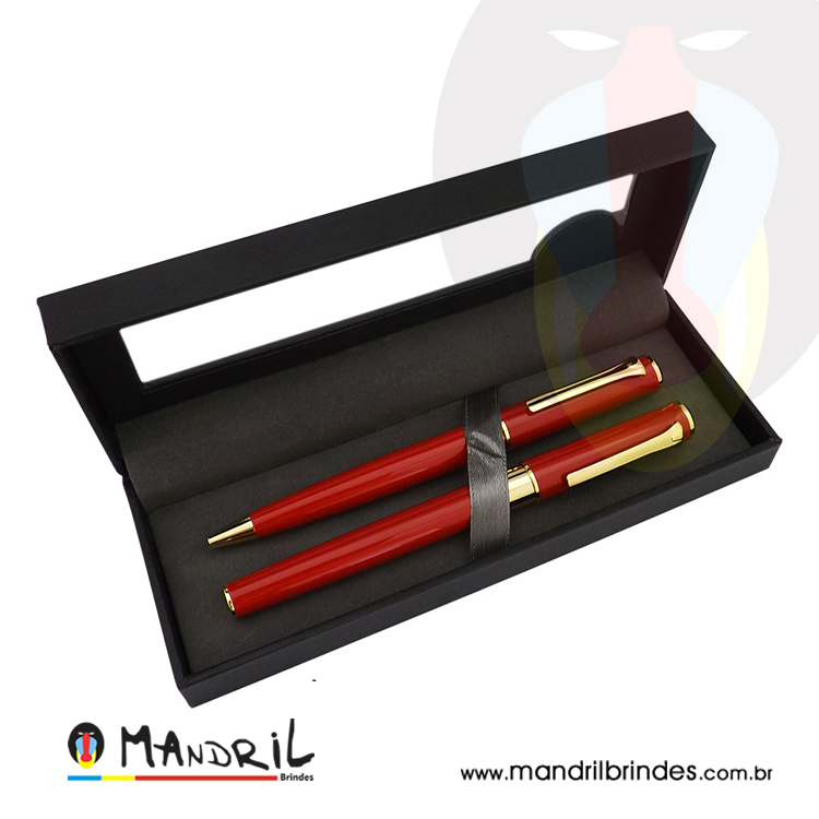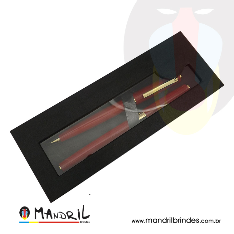 Kit Caneta Metal Roller + Caneta Esfero + Estojo de Madeira.