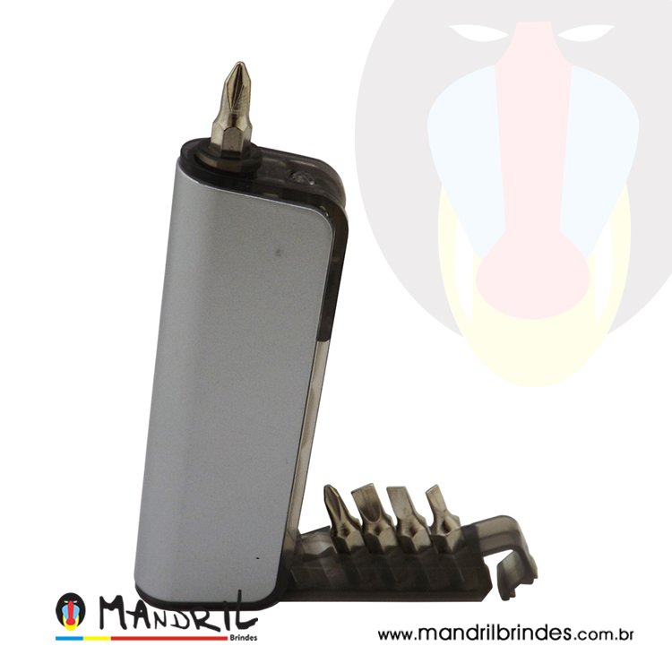 Kit ferramenta com 6 funções e lanterna, material de plástico com alumínio.