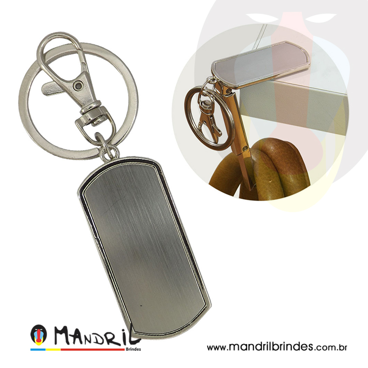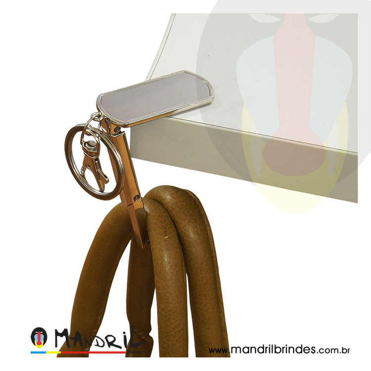 Porta Bolsa retangular de metal, com os cantos arredondados.