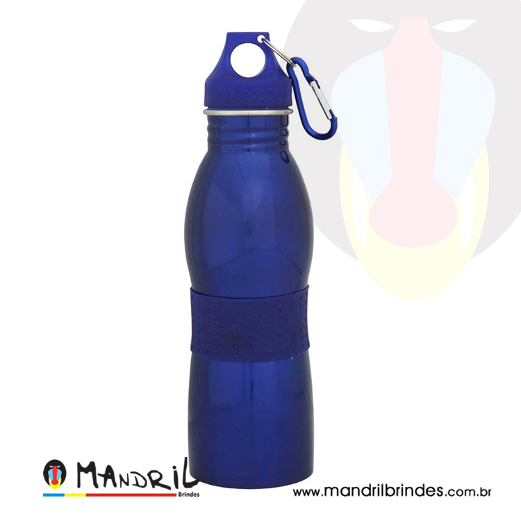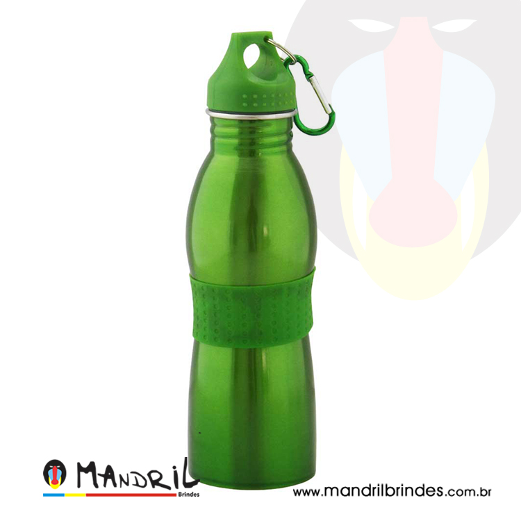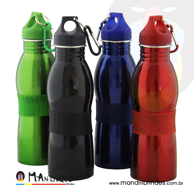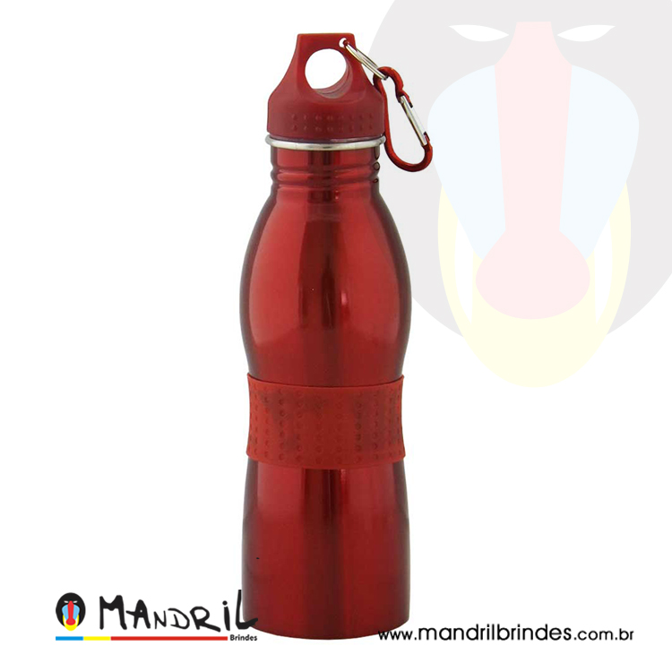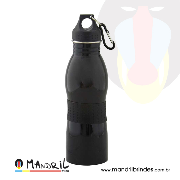 Squeeze de Inox com detalhe emborrachado, capacidade para 600 ml.